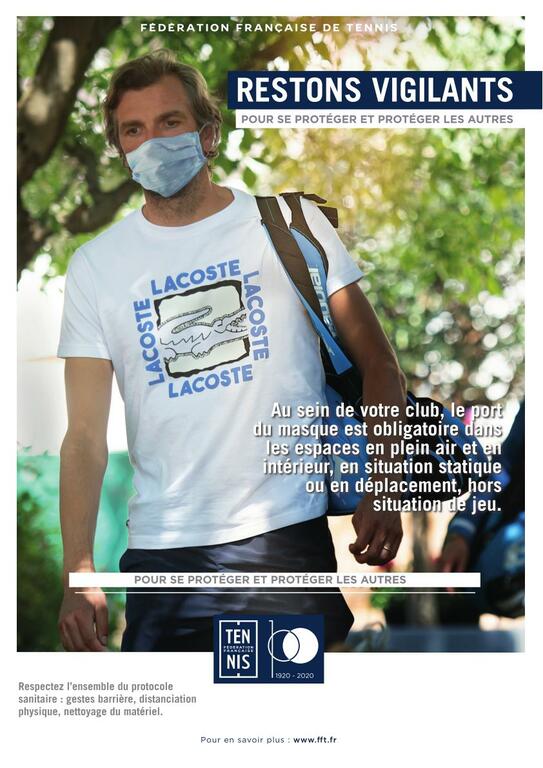 LE PORT DU MASQUE EST OBLIGATOIRE POUR TOUT DEPLACEMENT DANS LE CLUB ET A PROXIMITE DE CELUI-CI.
